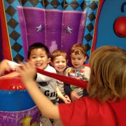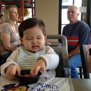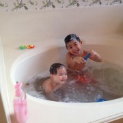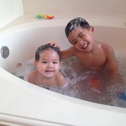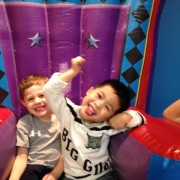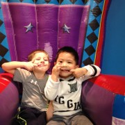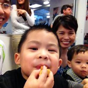 Ngày 2/1/2014 Cúc Cu đi sinh nhật bạn cũ Mariana ở ASI Gymnastics. Gặp lại Diego, hai đứa vui lắm, chơi chung suốt. Hết chơi xếp đồ tới nhảy cà tưng Tự động xếp hàng chơi cầu tuột Lên cầu tuột rồi thì ngó qua coi chơi cái gì khác. Em Cúc Ky mới đầu còn lạ. Sau cũng nhào xuống chơi. Tới giờ ăn nhậu Trong đám bát nháo lại chụp được tấm hình chung cả nhà. Trước khi về còn chụp hình kỷ niệm với bạn Diego. Ngày 2/15/2014 anh Hai lại đi sinh nhật bạn tiếp. Lần này là của bạn DJ. Anh Hai chạy chơi đủ thứ. Em cũng đi sinh nhật ké Em không chạy lại anh Hai nên chơi với mấy chị. ..rồi nhảy lưng tưng.. Chỗ Pump It Up này có nhiều cái để nhảy. Ra coi hành lang có gì Ăn thôi ăn thôi Anh Hai vừa ăn vừa nói liên tục. Mấy bạn này cùng lớp, biết nhau hết nên tha hồ quậy. Mới đầu chỉ có Bryce và con. Sau đó có thêm Jake Rồi Lyndon nhào vô Chơi bời quá nên lên xe là gục hết. Vậy mà bữa sau lại đi ăn tiếp. CiCi Pizza là nơi Ba và anh Hai thích nhất. Mẹ và em lại thích Chik-fil-a Ăn gần hết trái cây tráng miệng rồi! Đi Saigon Pagolac gặp bạn của Ba Mẹ. Về nhà bưởi chua quá, thôi đội cái nón bưởi chơi. Em ôm đồ chơi của Má Ba cho anh Hai hồi xưa. Em méc Mẹ ở nhà hư bị Bà Di bắt khoanh tay. Ngồi ăn mà để chân lên bàn mới chịu. Ăn hết rồi mà cái chân còn đó. Cúc Ky 20 tháng mà ở nhà còn cái nôi nhỏ này... ...để cho hai anh em leo lên leo xuống chơi. Em được vô tắm chung với Hai lần đầu tiên, ngày 2/172014.. Hai đứa vui quá xá!