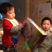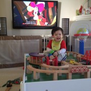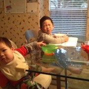 Sáng ngày 1/1/2014 hai anh em ăn sáng với cereal, như mọi ngày. Ăn một hồi thì có đứa bắt đầu đứng lên, như mọi ngày. Sau đó đạp xe vòng vòng. Hôm nay được nghỉ lễ nên tha hồ quậy. Chơi đồ chơi chán thì quậy tới anh Đăng. Sau đó đường ai nấy đi, anh coi tv, em leo bàn ngồi. Tối đến không biết sao cả nhà ngồi một đám dưới đất.  Em hun Mẹ một cái thiệt là đã. Anh Hai thì nhào ra nhào vô. Ngày 1/12/2014 Anh Hai đi sinh nhật bạn Chỗ này có đủ trò leo trèo Leo tường Leo lưới Nhảy xa Đi cầu thăng bằng.  Cái này Cúc Cu rành lắm vì có học ở Kidville rồi. Xếp hàng... ...để đu dây... ...và rới xuống cái đống này. Ăn thôi Hai cha con chụp cái này cho Mẹ và em thèm chơi. Chúc mừng năm mới!!! ... bằng hình Noel, hehehe