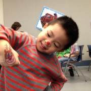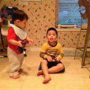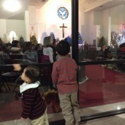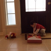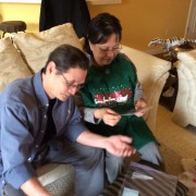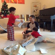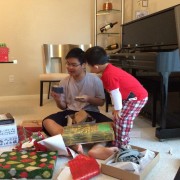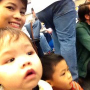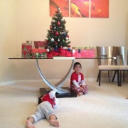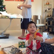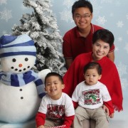 Gần Noel cả nhà đi chụp hình như thường lệ. Mới đầu còn mắc cỡ Ông chụp hình dụ quá mà Cúc Ky không cười. Sau rồi mới quen.  May mà không ai la hét um sùm. Cúc Cu thì cười suốt, vì được dặn dò tới lui nhiều lần. Năm nay Cúc Ky đứng chụp hình được rồi. Em 18 tháng.  Anh Hai lớn lẹ lên nghen. Tiệm này có đồ chơi Anh Hai ưa người tuyết Em thích kẹo hơn ̣Đàn ông trong nhà Cả nhà nằm dưới đất dòm ông chụp hình. Anh Đăng biểu diễn ở trường ngày 12/9/2013. Em 18 tháng, nặng 12.2kg (27lbs) Ngày 12/14/2013 cả nhà đi tiệc Giáng Sinh ở công ty như mọi năm. Ngồi coi ca nhạc. Anh Hai xếp hàng chờ lấy bong bóng. Em làm quen với chị đẹp. Rồi tới màn vẽ mặt, vẽ tay. Chơi xe lửa Gặp Cô Lisa làm chung với Mẹ. Ngày 12/19/2013 Ba đưa con đi hát dịp cuối năm ở trường. Năm nay con hát đàng hoàng, không đứng dòm khán giả nữa. Em ở nhà với Mẹ, lấy nón Má Tư cho anh Hai hồi nhỏ ra đội chơi. Ngày 12/24/2013 cả nhà đi lễ nhà thờ Nam Vang. Ai chụp mà tối hù vậy cà? Hai đứa đi tới đi lui, lạ lẫm, nào giờ đi lễ siêng quá, hehe. Em đang dòm đứa kia ăn.  Lát hồi em được người ta cho ăn ké. Anh gặp được bạn gái mới rồi, năn nỉ Mẹ cho ra gặp bạn suốt. Sáng 12/25 hai đứa nôn mở quà lắm rồi.  Năm nay làm cây thông trên bàn vì sợ có đứa kéo xuống. Quà Nội, Chú Lâm, Má Tư, Ba Mẹ, Bà Di, nhiều quá, mở thôi! Anh Đăng được cái đồng hồ Cúc Cu có nhiều xe Má Tư gởi cho Cúc Ky lục cái hộp đựng quần áo Bà Di cho Cả nhà vừa mở quà vừa nói chuyện với Ông Bà Nội. Nội cũng có quà của Đăng, Cúc Cu, Cúc Ky tặng Nội mặc áo mới Hai đứa chơi xe mới Em cười với Ba Giáng Sinh 2013 thật đầm ấm, vui tươi.