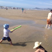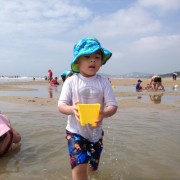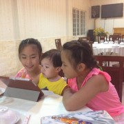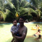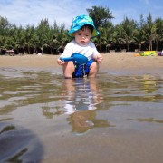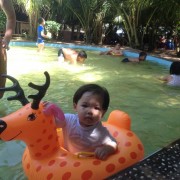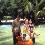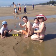 Ngày 10/18/2013 cả nhà đi Vũng Tàu. Đường phố Vũng Tàu sạch sẽ, vắng như Sài Gòn hồi xưa. Má Ba lựa khách sạn Hoa Tiêu này nhìn ra eo biển thiệt đẹp. Bãi tắm Long Cung cũng sạch sẽ, đặc biệt là hàng dừa mát rượi. Có mấy vũng nước trước khi ra tới biển nên Cúc Ky tha hồ chơi mà không bị sóng vô. Cúc Cu cũng tha hồ chơi cát với Chị Chin. Anh Chu chụp cho nhà mình tấm hình kỷ niệm Vũng Tàu. Tắm biển xong lại lên tắm hồ Mua con hươu này cho Cúc Ky ngồi chơi. Tắm hồ rồi mới tắm rửa sạch sẽ, lên ghế bố nằm chơi nhìn mấy cây dừa và ăn ghẹ. Ngày về còn ra tắm biển thêm một chặp nữa. Con chơi bắn súng nước với Ba. Lại thêm màn tắm hồ sau khi tắm biển. Hai đứa chơi tưng bừng. Bà Cố hôm nay mới chịu xuống biển đi vòng vòng. Cố nói kỳ sau đem xà lỏn theo, hihi. Chiều về khách sạn đem ghẹ ra nhậu tiếp. Tối ra nhà hàng ăn ghẹ nữa, hehe. Em được mấy chị cho coi phim để Ba Mẹ ăn. Mọi người tổ chức sinh nhật làm anh Chu bất ngờ quá xá. Ông Bà Ngoại tưởng chỉ có sinh nhật anh Chu hóa ra lại thêm màn kỷ niệm 49 năm ngày cưới. Bà Cố là người dơi Batman BácHoàng ,Bác Đảnh, và Ba có râu tóc đẹp Má Hai, Má Ba, Má Tư và Mẹ cũng đẹp luôn.  Em thì chỉ muốn ngủ thôi. Mọi người tạo dáng xì-tin.  Ba kênh xì po. Má Hai và anh Chu quá đẹp Má Ba thì hết ý luôn Má Tư và đám bí bum Ông Bà Ngoại và đám cháu quậy tưng.