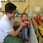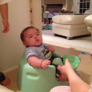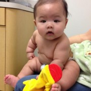 Ngày 10/19/2012 Cúc Ky đi khám định kỳ 4 tháng Em cân được 17.85lbs (8.1kg) ..dài 24.5in (62.2cm) Y tá kêu em là võ sĩ sumo và xin được bồng em một chút cho đã. Em ngồi ngoan đợi bác sĩ vô khám Bác sĩ khen giỏi quá. Em chích ngừa về không sốt chút nào. Ba Mẹ mừng ghê nơi. Con thì được đi ăn ở tiệm buffet Golden Corral.  Anh Đăng và con ăn quá chừng món ngon, đi về còn lấy thêm cây kẹo bông gòn. Ngày 10/20/2012 con đi ăn sinh nhật Marianna.  Vì sắp tới Haloween nên mọi người mặc đồ hóa trang.  Con làm Thomas the train. Em cũng làm Thomas the train. Con vừa tới chỗ chơi là chơi khủng long như thường lệ. ..sau đó là tới xe hơi... ..rồi chơi cầu tuột với Diego và Tyler. Tới giờ ăn sinh nhật rồi, nhiều bạn quá. Ở trường cũng có nhiều bạn.  Hôm nay học 'làm bếp' nên có nón đầu bếp đội chơi. Thứ sáu thì được Ba dẫn đi ăn sáng ở McDonald's ngon ngon. Về nhà thì được coi Tom and Jerry.  Bây giờ con biết coi nhiều phim hoạt hình rồi. Anh Đăng đánh đàn thì nhào lên 'phụ'. Thỉnh thoảng cũng cho em Cúc Ky rờ vô đồ chơi xe lửa. Ngày 10/25/2012 em biết rờ mặt Ba lần đầu tiên. Bây giờ em lật 'nghề' lắm rồi. Ngày 10/21/2012 em ăn bột lần đầu tiên.  Mới đầu còn nhăn nhăn, sau đó ăn hết sạch. Em 4 tháng, con 3 tuổi 9 tháng.  Có hai đứa mỗi ngày mỗi khác nhưng thật là vui.