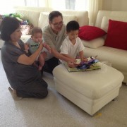 Ngày 10/11/2012 em biết lật!! Ba Mẹ đi làm về thấy em biết lật là vội vàng chụp hình.  Anh Đăng cũng nhào vô dụ em cười để chụp hình. Em đợi tới 3 tháng 3 tuần mới lật, nhưng khi lật rồi thì lật rất nhanh. ...không cần giơ chân cao như con.. ...quẹo chân qua một cái là lật rồi. Mẹ chụp hình em kỷ niệm sự kiện 'trọng đại' này. Trời tháng 10 thiếu nắng nên hình không đẹp bằng hình con. ...nhưng cũng dễ thương quá trời, hihi!!! ..nhìn giống anh Cúc Cu không? Cúc Cu hồi 3 tháng nè. Em ơi nhìn đây... Bây giờ em đủ lớn để Ba đeo trước bụng đi vòng vòng trong nhà. Ba đeo Cúc Cu lúc gần 4 tháng Cúc Cu lúc mới biết lật Cúc Ky lúc mới biết lật Cúc Cu Cúc Ky lúc .. không giành đồ chơi! Ngày 10/3/2012 Cúc Cu đi bác sĩ, cân nặng 35.3lbs (16.01kg) Lỗ tai viêm, còn mọi thứ khác ngon lành. Đi học ngon lành luôn. Tháng 10/2012 cũng là tháng Cúc Cu hoàn tất 'potty training', sau hơn 1 năm luyện tập ngồi bô.  Weeee!! Cuối tuần vẫn đi tập thể dục ở Kidville như thường lệ. Ngày 10/12/2012 em mặc đồ đẹp đợi Nội xuống chơi. Có đồ chơi treo trong nôi em thích lắm. Nội đây rồi!! Em chơi chút rồi ngủ mất tiêu, Nội ngồi bồng em không nhúc nhích. Nội gặp em lần đầu hồi tháng 7, tháng 10 gặp lại là thấy khác nhiều rồi. Có Nội ẵm bồng suốt ngày em vui ghê. Con thì được Chú Lâm cho thêm một cuốn sách có nhiều con thú xếp ở trong. Anh Đăng thì trổ tài đánh đàn, được Ông Nội khen quá chừng. Con cũng trổ tài đánh đàn lẹ lẹ giống anh. Em thì bị Mẹ bắt làm người mẫu sexy. Áo xanh rồi tới áo đỏ... ..cho giống Cúc Cu hồi 1 tháng 10 ngày. Em được ở nhà, không bị bệnh nhiều như con nên khỏe hơn. Hy vọng em lớn nhanh lớn khỏe để hai anh em cùng chơi chung ha.