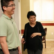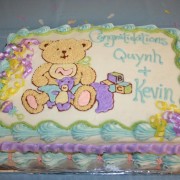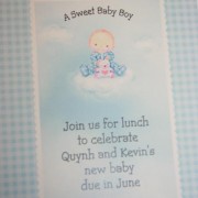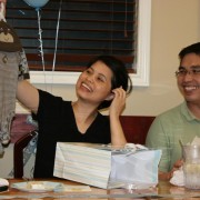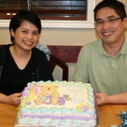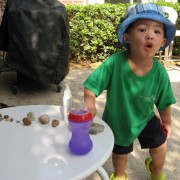 Ngày 4/11/2012 mấy người làm chung công ty Ba Mẹ tổ chức tiệc mừng em sắp ra đời. Mọi người âm thầm chuẩn bị mọi thứ, từ dĩa ăn... ..tới khăn ăn... ..cả bánh kem có hình giống hình trên khăn ăn.. ...và dĩ nhiên không thiếu quà cho em.  Tất cả đều giữ bí mật, Mẹ hoàn toàn không hay biết gì. Buổi trưa mọi người tới nhà hàng trước. ...giả bộ bất ngờ để chụp hình chơi... ...mỗi người mỗi kiểu... Ba Mẹ là người tới cuối cùng. Mẹ tưởng là đi ăn trưa với Ba, hóa ra là đi tiệc baby shower cho em.  Bất ngờ quá!! Hóa ra Ba cũng đã biết từ cả tháng trước. Chụp hình kỷ niệm cái bánh kem. Ba làm mấy cô sợ rớt bánh giữa chừng. Ba bưng bánh mời mọi người. Ai cũng khen Ba 'nghề' quá. Ai nấy ăn uống vui vẻ rồi mở quà của mọi người cho em. Em không có nhiều quà như con nhưng cũng đủ làm Ba Mẹ hạnh phúc vì được mọi người quan tâm. Con cũng có cái áo để mặc làm anh hai. Buổi tiệc đơn giản nhưng thật vui. Con vẫn chưa biết gì về em, nhưng Mẹ hỏi em khóc phải làm sao, con nói 'I'll hold him'.  Hình này con tự chụp. Cuối tuần rồi mình ra vườn chơi.  Con lượm đá chơi như mọi khi. Mẹ nói cười đi, con cười thật dễ thương. Cầu mong em cũng dễ thương như con hén.