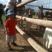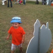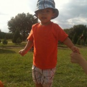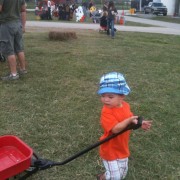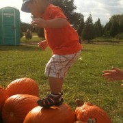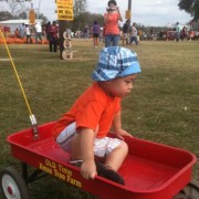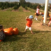 Ngày 10/23/2011 mình đi trang trại Old Time Christmas Tree chơi. Mới đầu con ngoan ngoãn ngồi trên xe cho Ba kéo đi... Sau rồi con tự kéo xe luôn. Thấy con hay không? Trang trại này cuối năm bán thông, giờ thì bán bí ngô. Lần đầu tiên con tới trang trại này.  Nhiều bí quá, đi phải né. Leo thử lên coi sao... ...gần đứng được rồi... ..hihi, vịn tay Mẹ chút xíu thôi. Có chuồng dê nữa Ba ơi! Hi goat!!! Con dê này ngoan quá, cho con vuốt hoài thôi. Mẹ ơi đi thôi, không chụp hình đâu. Đi coi mấy cái hình trang trí Halloween. è...đẹp mà mắc quá.. ̣Đi vòng vòng trang trại trên xe kéo bằng xe máy cày. Con nhìn ly nước đá của cô bên cạnh mê mẩn... Mình lựa bí đem về chơi.  Lựa trái lớn ... ...hay là trái nhỏ... ...trái này được đây...nhưng mà... I like rock, con nói. Thế là con về với hai cục đá lựa rất kỹ ở đưới đất.