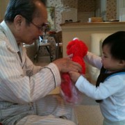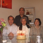 Ngày 2/17/2011 Ba đi VN rước Ông Bà Ngoại qua Mỹ chơi. Ngày 2/20 mọi người tụ tập ăn uống tiễn Ngoại lên đường. Con ở nhà nhớ Ba ghê. ̣Đi rửa xe với Mẹ cũng nhớ Ba, ôm con chó này đỡ vậy. Nhưng mà con vẫn ăn ngoan lắm đó Ba. Ngày 2/21/2011 Ngoại tới Mỹ lần đầu tiên, thành phố Westminster, bang California. Ngay ngày hôm sau là đi núi Big Bear.  Ngoại cầm tuyết lần đầu tiên ngày 2/22/2011. Ngoại ở Cali 1 tuần để thăm Ông Bà Lễ, họ hàng, và bạn bè thân thuộc. Đi biển Huntington với Bà Lễ và Ba. 'Ông Ngoại và biển cả' Gặp ông Mỹ thổi kèn xin tiền.  Hihi ông này ở VN có ai cho tiền không ta? Ngoại tới nhà thăm Bà Sáu, em Bà Út bạn Ngoại. Nhà này có cây trái bông hoa đẹp quá. Đi tiệm sách ở khu Little Saigon, Westminster. Ngày 2/27/2011 Ngoại về tới Texas.  Con vui lắm. Vui nhất là gặp lại Ba! Con thích ngồi lên cái thùng đựng trampoline Chú Lâm cho hồi Noel 2010. Chú Lâm và Nội còn cho con Elmo nữa.  Ngoại mở Elmo cho con chơi nha. Con ôm Elmo suốt thôi. Con còn có quà của Bà Cố, các Má, và các anh chị ở Sài Gòn cho nữa. Ông Bà Ngoại thì tìm hiểu coi trần nhà bên Mỹ có gì.... ...máy hút bụi hoạt động ra sao... ...tiệm ăn VN ở Mỹ dở tới cỡ nào... ...chợ VN ở Mỹ bán mắc ra sao... Ngoại thì ngắm bình bông như thường lệ.  Ngắm thôi, hổng mua. Nhà mình còn đi thương xá Galleria... ...để Ngoại lựa giày êm êm... ...lựa kẹo ngọt ngọt... ...và coi người ta trượt băng trong thương xá. Cuốt tuần Ngoại đi chợ Mỹ với Mẹ. Con thì coi cái đàn piano ở nhà Bà Ngân đánh có hay không. Gia đình Bà Ngân và Ông Khoa tới thăm Ngoại. Tề tựu ăn uống Ông Bà Tư và Ông Tám tới thăm, ăn uống tề tựu tiếp. Ông Bà Tư còn đem bánh kem tới, mọi người chọc là sinh nhật Ngoại. ...thế là thôỉ̉ nến.. ...cắt bánh kem ngon lành. Mọi người ăn bánh xèo, bún thịt nướng...Con ăn cánh gà ngon ngon. Con đi sinh nhật bạn được cho cái mắt kiếng này. Nhìn con giống Ba không? Con cũng giống Ông Ngoại nữa.