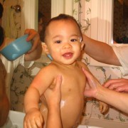 Hồi đó con nằm trong nôi nhỏ xíu... ...bây giờ con dài gần bằng cái nôi lớn, chạy tới chạy lui trong nôi. Hồi đó hai bàn chân con nhỏ xíu, nhăn nheo... ...bây giờ chân con cũng nhỏ xíu nhưng mà mập mạp, Mẹ tìm giày mệt nghỉ, không đôi nào vừa. Hồi đó con ngủ trong lòng con ếch... ...bây giờ con leo lên mình con ếch đứng. Hồi đó con đi tiệm phở với Ba Mẹ (mới 3 tuần thôi, hihi)... ...bây giờ con tự bốc phở ăn ngon lành. Hồi đó Nội run run cho con bú... ...bây giờ Nội run run nhìn con ăn, hy vọng con ăn hết... Hồi đó con đỏ hỏn trong tay Mẹ đi tắm... bây giờ con nhảy cà lưng cà tưng trong phòng tắm. Hồi đó đặt đâu con nằm đó, dòm bà con qua lại... ...bây giờ con ôm trái banh, chui xuống gầm ghế ngồi chơi. Hồi đó con tới trường lạ lẫm với mọi thứ... ...bây giờ con chạy lung tung trong trường chơi với các bạn. Hồi đó con đợi Ba đi làm về ẵm con... ...bây giờ con đợi Ba đi làm về để con leo lên mình Ba chơi. Hồi đó Bà Nội ẵm con gọn hơ... ...bây giờ Ông Nội mới ẵm nổi con, hy vọng con không nhào lên nhào xuống. Hồi đó Chú Lâm bồng con cười sung sướng... ...bây giờ Lâm bồng con sung sướng cười! Hồi đó Ba Mẹ còn chưa biết có con vui tới cỡ nào... ...bây giờ con cười là Ba Mẹ cười gấp đôi.