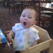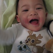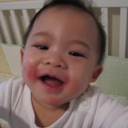 Ba Mẹ hôm nay khám phá ra được con có một cái răng đang lú ra Ba Mẹ dụ dỗ đủ cách để con cười cho mọi người thấy cái răng đầu tiên Chụp xa... ...chụp gần... ...chụp ngang... ...chụp hoài mà rốt cuộc chỉ thấy răng Ba còn răng con thì không thấy đâu À đây rồi, cái răng bên dưới mọc trước Ba Mẹ sợ con mọc răng bị sốt mà con không sao cả Con bò khắp nơi từ phòng tắm Ba Mẹ.. ...bò ra gần tới cửa rồi quẹo vô phòng khách Tối đi học về con ngồi đây chơi Đợi Ba Mẹ khuấy bột cho con ăn tối Sáng con ngủ dậy không thấy ai thì ngồi chơi một mình Ba Mẹ vô thì con cười liền Hôm nay Ba Mẹ đưa con đi khám định kỳ Trong phòng bác sĩ khi nào cũng lạnh ngắt con phải mặt hai ba lớp Ba Mẹ đi làm về ghé đón con Cái nôi trong góc là nôi của con trong trường. Trên đầu nôi có dán hình Ba Mẹ Chiều nay về cả nhà mình ghé quán buffet Tàu gần nhà ăn tối. Con mệt rồi Cuối tuần đi chợ Target mua đồ Con tự chơi một mình trong chuồng Vịn đồ chơi đứng lên được rồi Ba Mẹ thỉnh thoảng vô chuồng ngồi chơi với con Trên bàn thay tã trong phòng con