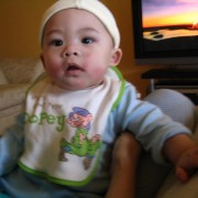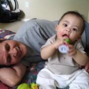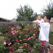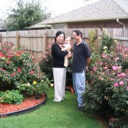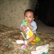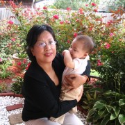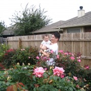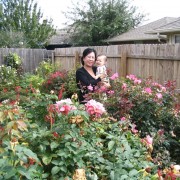 Con thích cái đồ chơi này dể gặm nên đi đâu cũng mang theo Sáng nay con ở nhà chơi với Ba Mẹ và Chú Lâm đợi Ông Bà Nội đi làm về chơi với con. Nội về tới nhà là ẵm con liền...nhớ quá nhớ quá Mẹ cho con cuốn sách bằng vải mềm để gặm mà con chỉ thích gặm cái móc cứng cứng vui hơn Trưa nay trời mát nên ra vườn chụp hình với mấy bụi bông hồng cưng của Bà Nội Ba sợ mấy con muỗi cắn con nên hối chụp lẹ lẹ rồi vô nhà Con bị nhốt trong nhà suốt thành khi ra ngoài khi nào cũng hớn hở cười tươi Mẹ chọc con cười để chụp hình khoe mọi người Bỏ con vô xe để cả nhà rảnh mà ăn cơm Chú Lâm dành rửa chén Bà Nội cưng mấy bụi hồng này lắm, ngày nào cũng ra vườn chăm sóc nó nhưng con lên chơi là Nội bỏ hết chạy theo con Ông Bà Nội đợi lâu lắm rồi mới có thằng cháu để bồng Bà Nội trồng bụi dâu bên cạnh cho Cúc Cu khi nào lên thăm Nội thì ra vườn hái dâu Nội sao không trồng cây dừa cho con sau này leo cho sướng? Nội chỉ muốn bồng Cúc Cu cả ngày